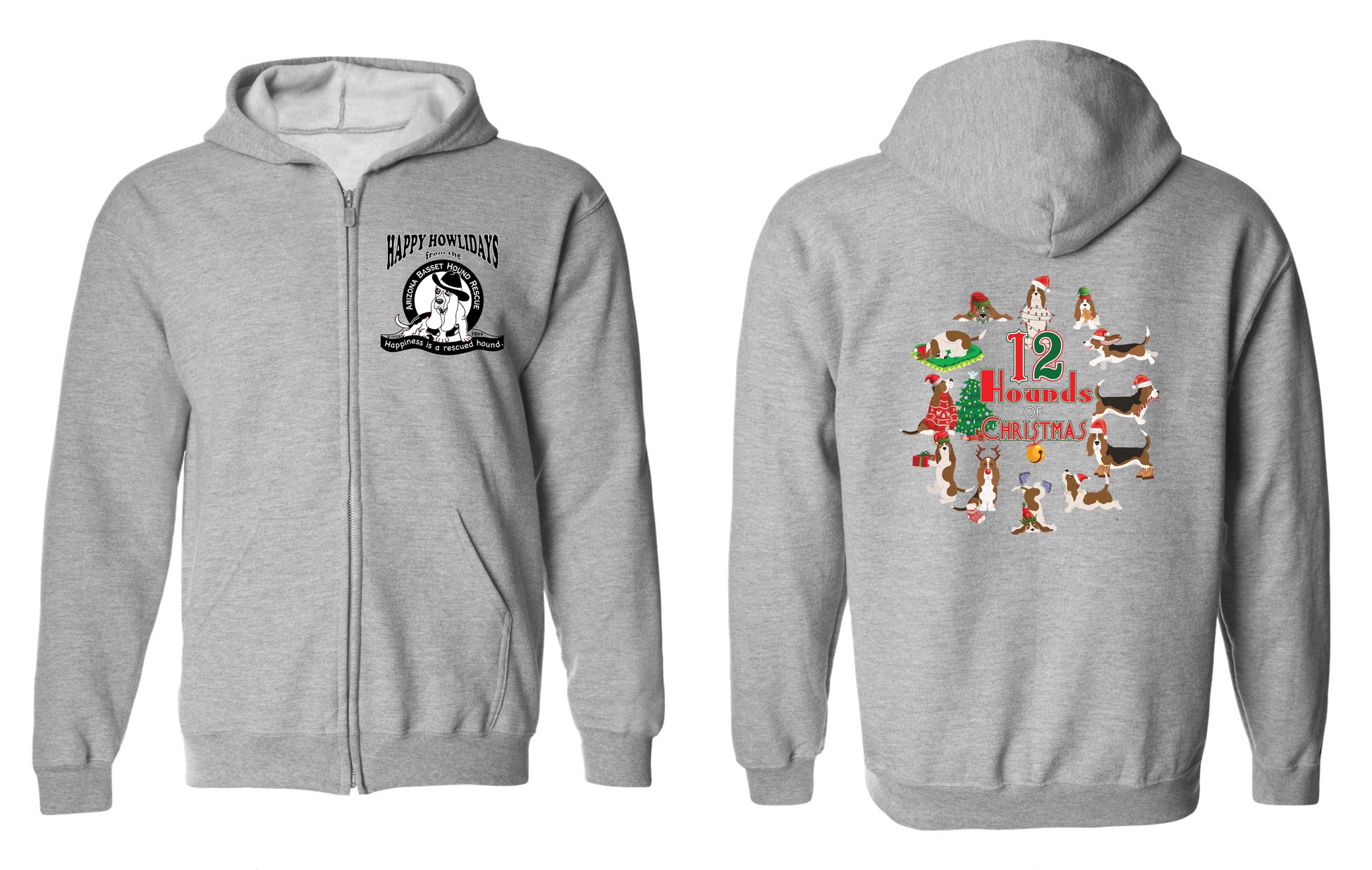 12 Hounds of Christmas Zip Up Hoodie